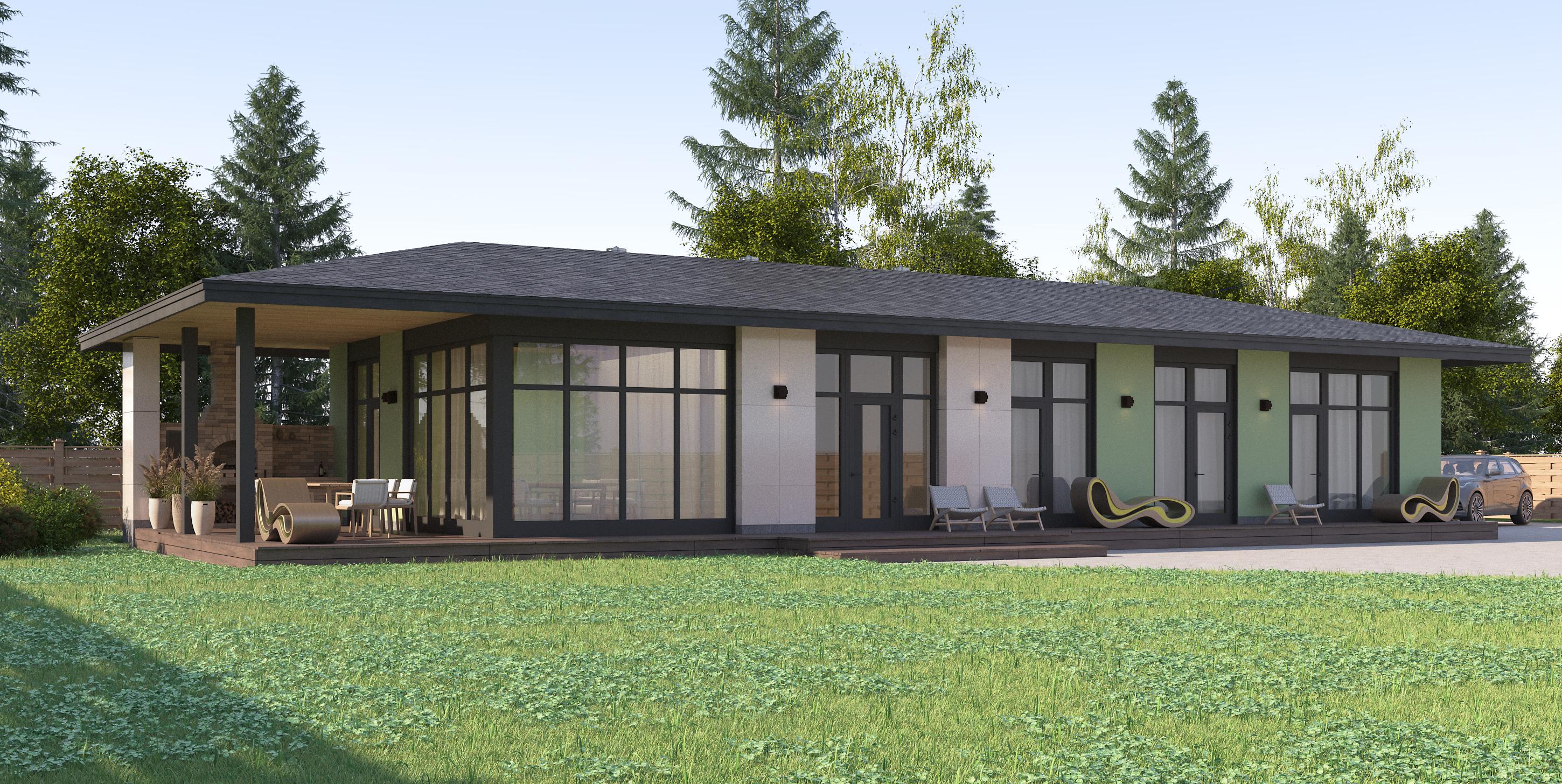 Просторный, стильный дом с оптимизированной планировкой. - Кирпичные стены и перегородки —надежность и комфорт на долгие годы. - Потолки высотой до 4,2 метров - Панорамное остекление - Отдельные выходы на террасу из гостиной и мастер-спальни - Система теплых полов – тепло и уют без потерь - Подходит для узких участков (минимальная ширина участка для размещения дома – 16метров). - Увеличенная гарантия входит в стоимость 150 м² эффективно спланированного пространства: - Просторная кухня-гостиная с выходом на крытую террасу - Три спальни, включая мастер-спальню с гардеробной и отдельным санузлом - Возможно размещение сауны в доме - Терраса с возможностью остекления теплого контура Стоимость строительства на 2026г. «Тепловой контур» – от 7 00 000*руб. «Под черновую» - от 8 000 000*руб. «White box» - от 8 500 000*руб. *- Стоимость при стандартных условиях, стоимость может быть изменена в зависимости от индивидуальной комплектации дома, условий оплаты, удаленности участка строительства, условий стесненности производства работ.